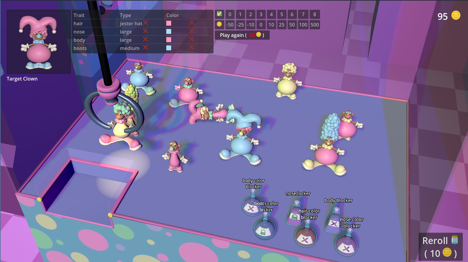 You can also drop potions on top of the clowns to lock (100% pass to the resulting clown) or block specific features.